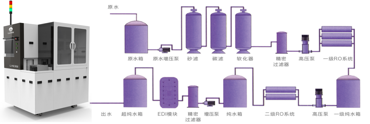 1、切割水:進水管φ12mm,采用去離子水,電阻率≥2MΩ,水壓0.2Mpa-0.4Mpa,水流量大于等于13LPM,水溫控制在±1℃。