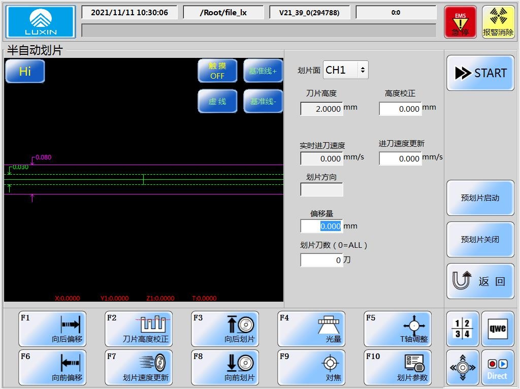 界面點擊半自動劃片后,點擊手動劃片按鈕后,進入界面手動劃片: