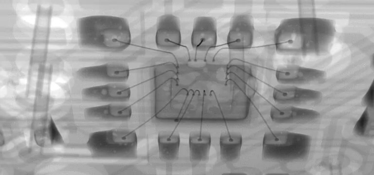 所以,把芯片經(jīng)X光的照射,就能看到die和金線的分布,只要避開這些區(qū)域,就可以將芯片封裝刮開,達(dá)到修復(fù)芯片或者破解芯片的目的。