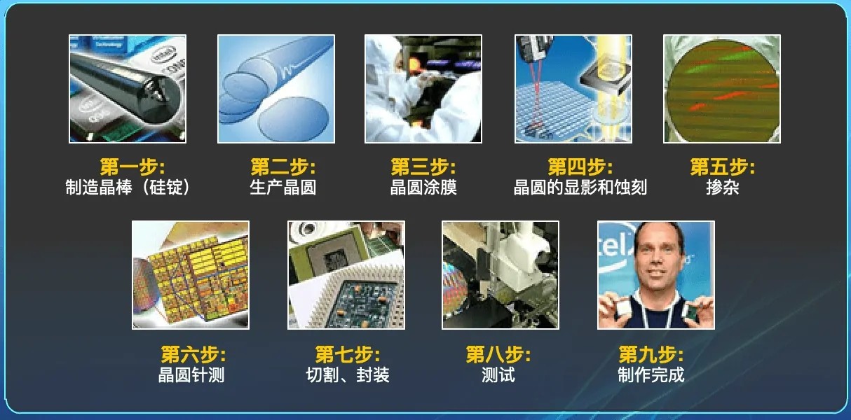 然后晶圓經(jīng)過光刻和蝕刻成若干片die,經(jīng)過晶圓針測后,將切割下來的die進(jìn)行封裝,最后對封裝好的芯片進(jìn)行測試。
